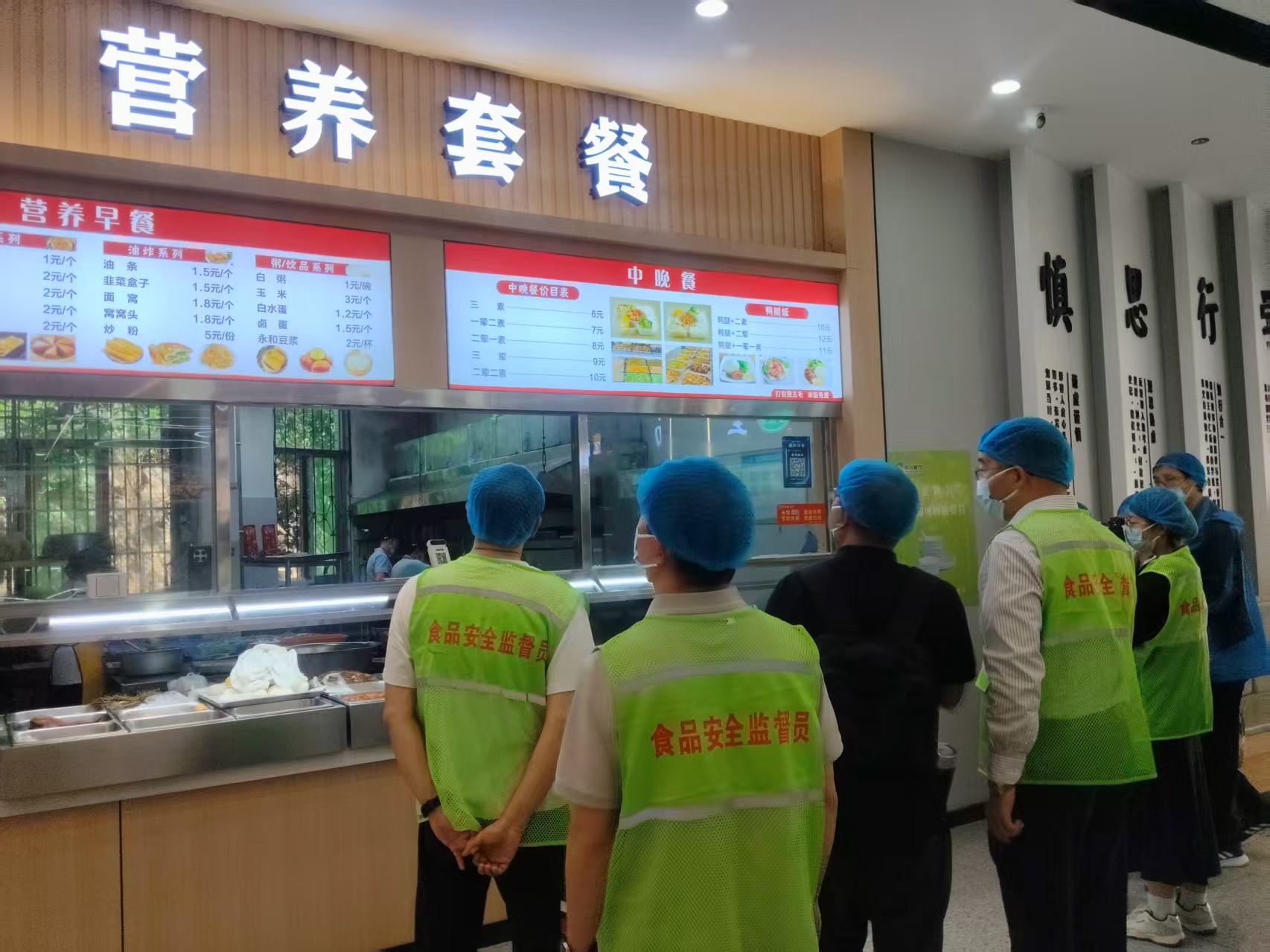 9时许,在食堂实地参观环节,学校膳食与食品安全管理委员会办公室成员、食品安全监督员等代表走进书香餐厅,实地查看就餐环境、专间设置、“三防”措施落实、餐用具清洗消毒、食品留样等关键环节,详细了解食堂管理制度、原材料采购验收、食品加工操作规范、日常运营监管等工作内容。工作人员现场讲解食品安全管控要点,解答师生疑问,让大家全面掌握食堂食品安全保障举措。“今天看到所有操作都公开透明,我们也吃得放心多了。”一名学生代表在参观后感慨。
