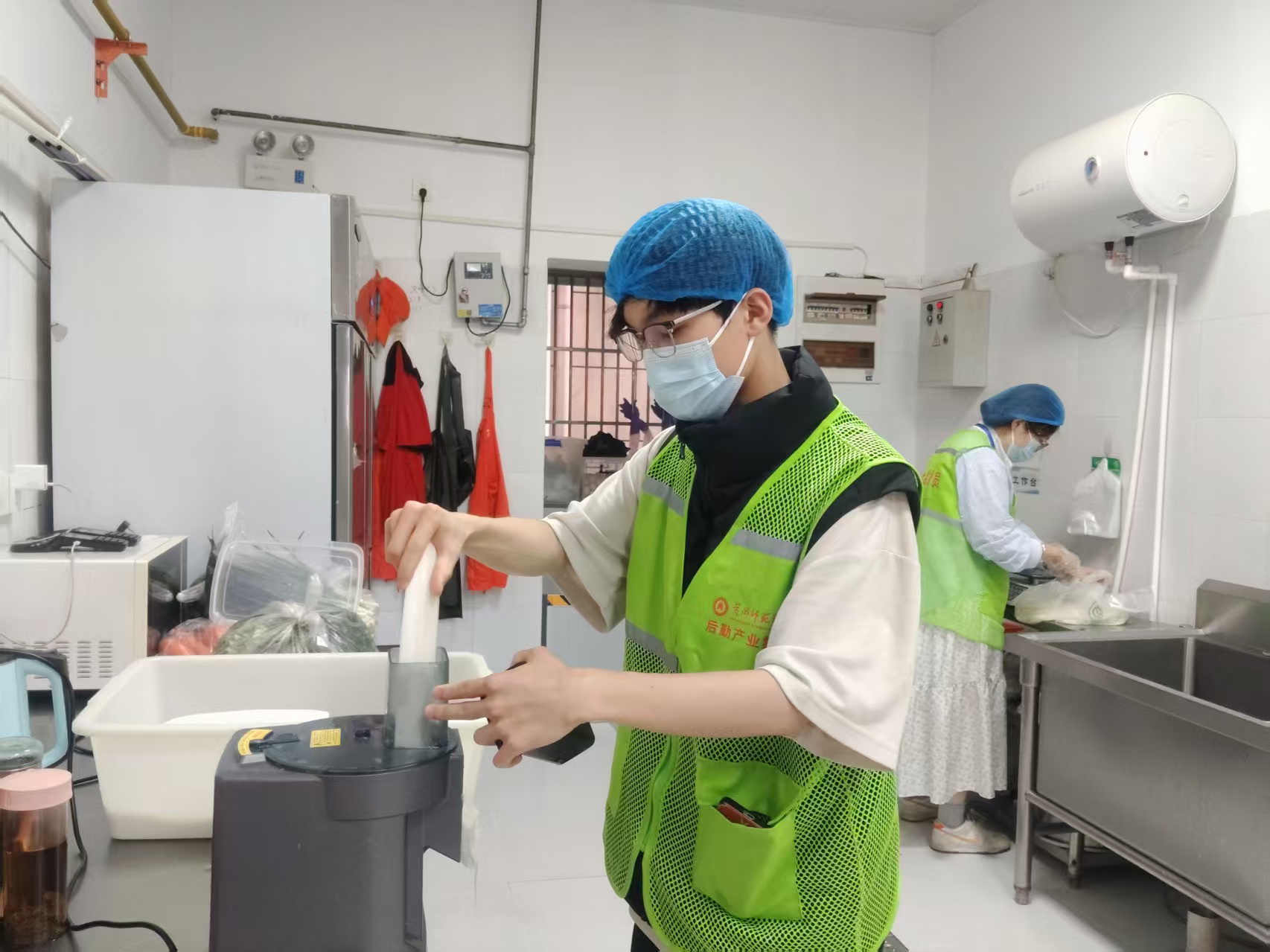 当天,该校后勤产业集团联合学生工作部(处)、膳食与食品安全管理委员会办公室,邀请25名学生代表走进食堂一线,开展劳动教育体验与实地参观活动。从清晨备餐到午餐收尾,同学们全程参与馒头包子制作、蔬菜分拣、窗口售卖、环境保洁等工作,在实践中直观感受食品安全保障的每一个细节。