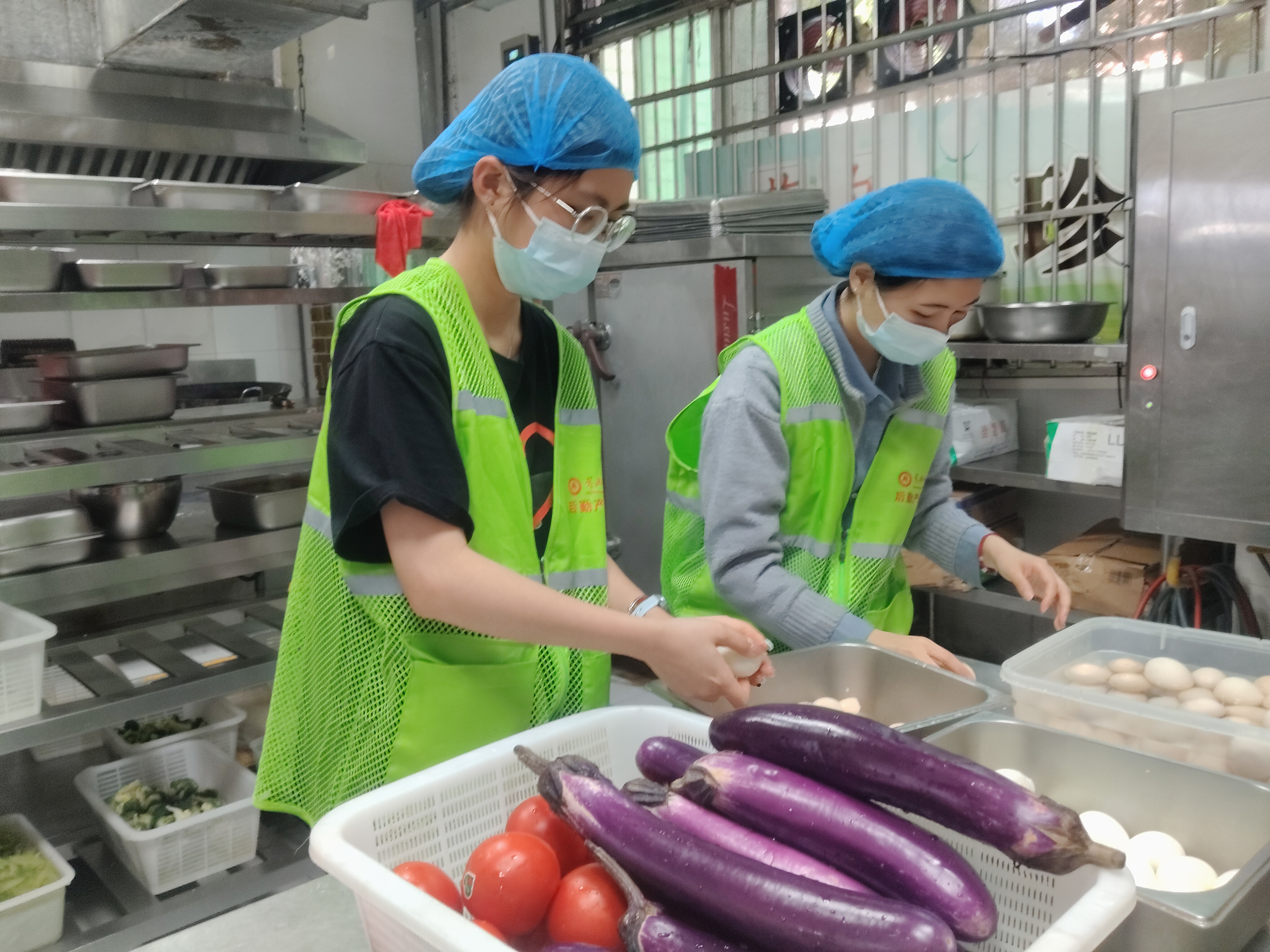 在另外一个工作间,地理与旅游学院的付梦娇和吴佳琪正小心翼翼地处理着煮熟的鸡蛋。“别小看剥鸡蛋,劲大了会破损,劲小了壳又剥不干净。”两人蹲在篮子旁,指尖轻轻叩击蛋壳,慢慢剥离内膜,半小时才完成一篮鸡蛋的处理。“看着自己剥的鸡蛋被摆上窗口,突然觉得劳动真的很有成就感。”吴佳琪开心地说道。