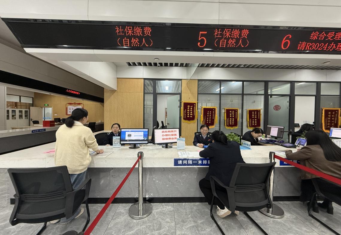 这一变化源于蕲春县政务服务中心推进的一项“小切口”服务优化。针对群众反映较多的“社保参保在楼下、缴费在楼上”的跑腿问题,税务窗口主动与政务中心和社保窗口对接,将原本设在二楼的缴费窗口前移至一楼社保服务专区,实现“参保登记—缴费核定—申报缴费”全流程“一站式”办结。