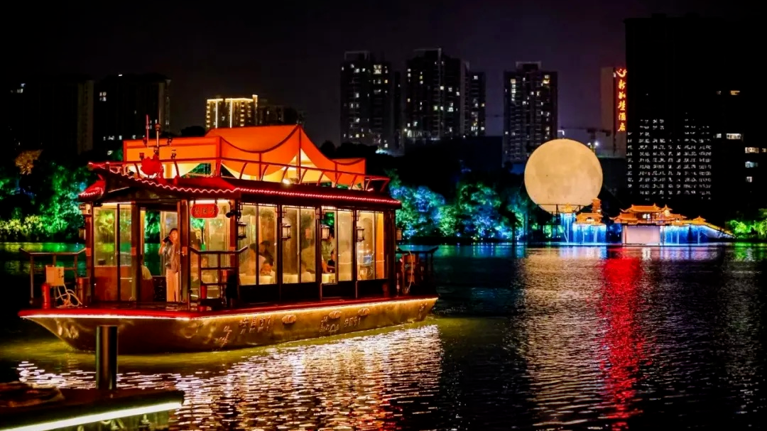 暮色降临,华灯初上,21:00 停航,乘船夜游看湖面光影流转,一秒走进“琼楼玉宇”的诗词世界!