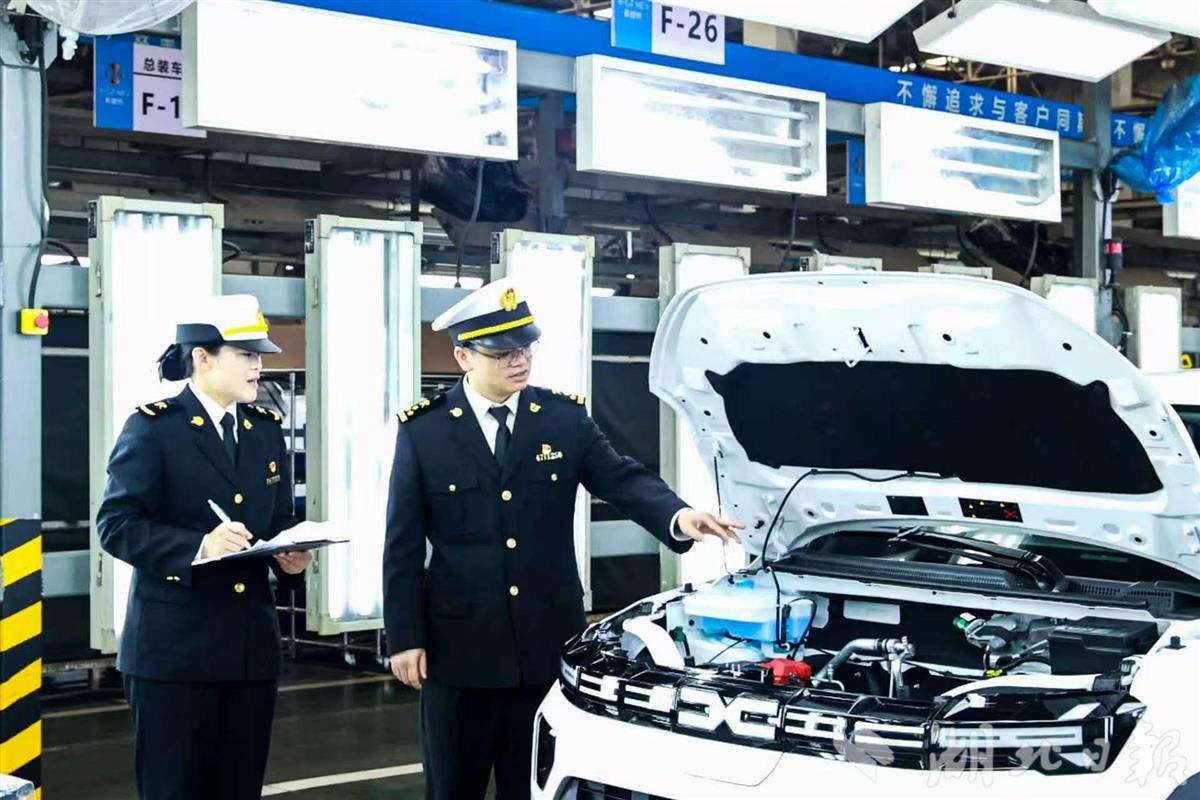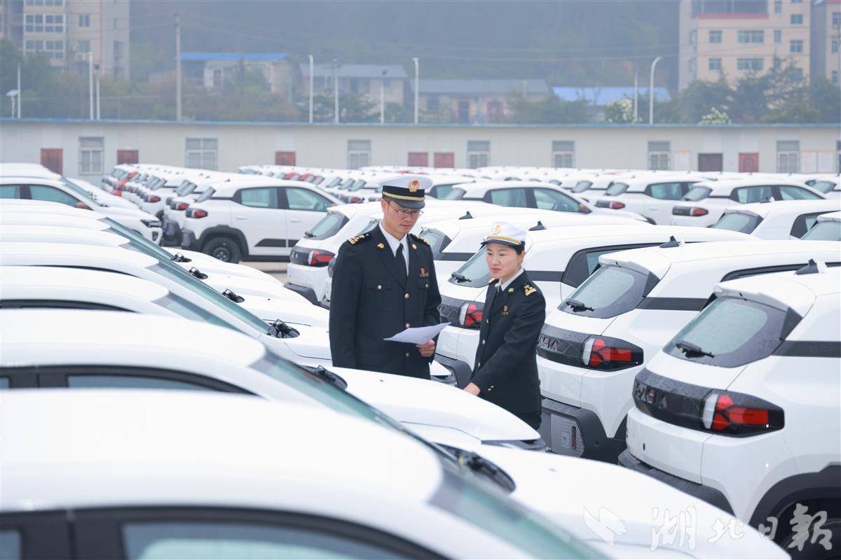 海关关员在检查出口汽车产品。