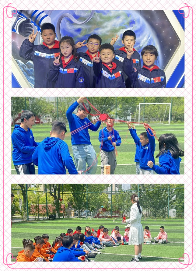 帅气的航天服,是航天员探索太空的“铠甲”!孩子们近距离观察航天服细节,聆听航天服研发故事,沉浸式体验航天员的责任与荣耀。在随后的趣味挑战合力搭建环节,孩子们用绳子操控积木,分工配合、默契协作,在挑战中体会团结的意义。在水火箭制作与发射现场,在老师指导下,孩子们分组动手组装,利用气压原理模拟火箭发射,亲手见证“小火箭”一飞冲天!