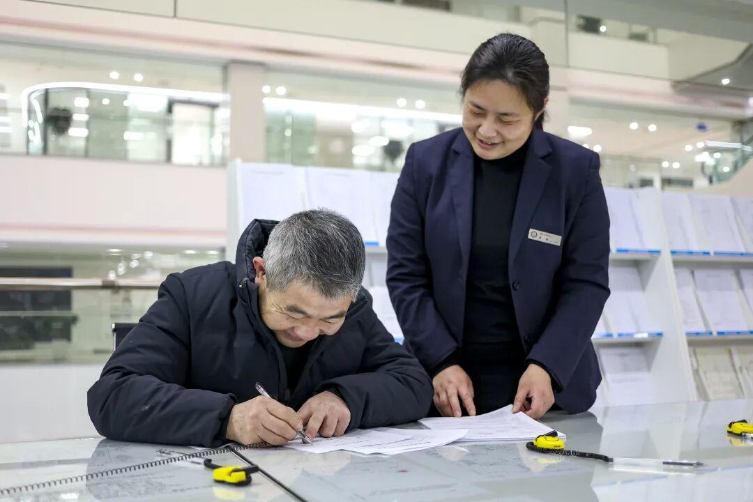 工作人员帮助市民办理业务。