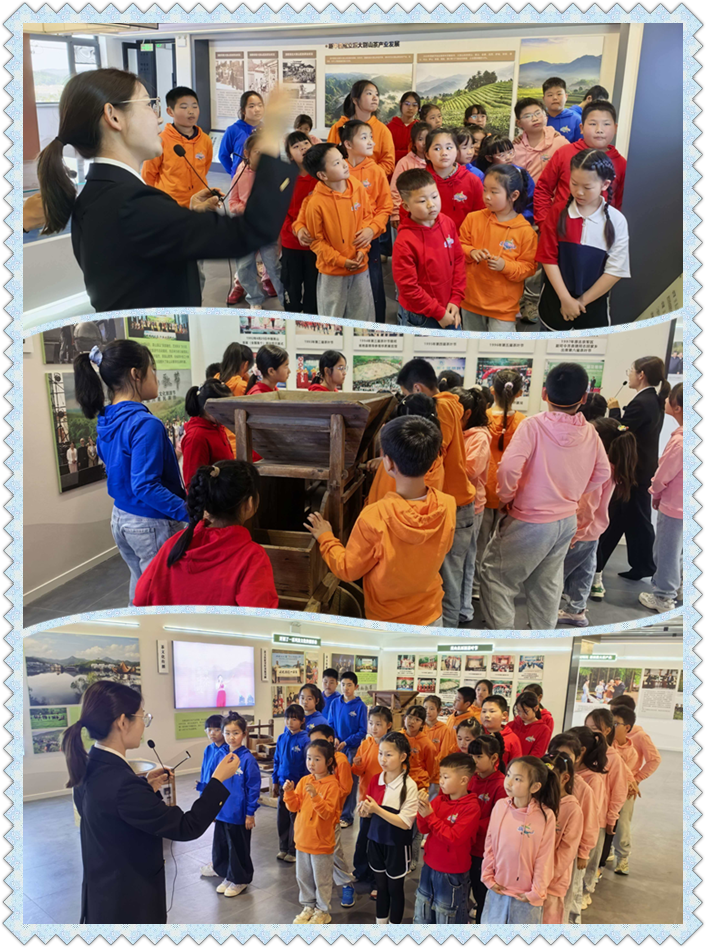 在英山县茶叶博物馆,茶史文物、非遗器具、名优茶品有序陈列,全景展现英山茶千年脉络、非遗技艺与产业辉煌。茶产业导师细致讲解英山茶史沿革、团黄贡茶非遗技艺、英山云雾茶标准、智能加工及出口产品等内容,孩子们认真聆听、仔细记录,沉浸式感受英山茶的文化底蕴与产业担当,读懂“一片叶子富一方百姓”的振兴密码。