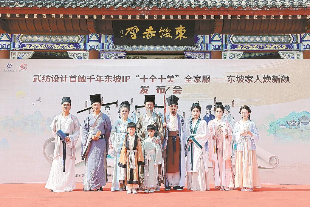 4月25日,武纺设计首触千年东坡IP“十全十美”全家服——东坡家人焕新颜主题发布会在黄冈东坡赤壁举行,武汉纺织大学设计团队推出专属东坡家族国风全新服饰,融合宋韵美学与传统元素,以沉浸式演绎再现东坡家风古韵。现场,以苏东坡一家十口为原型打造的人物形象,时隔千年首次集体“同框”。这些形象身着兼具复原与创意特色的宋代风韵服饰,仿佛从诗词中走进现实。 记者 周伟 摄
