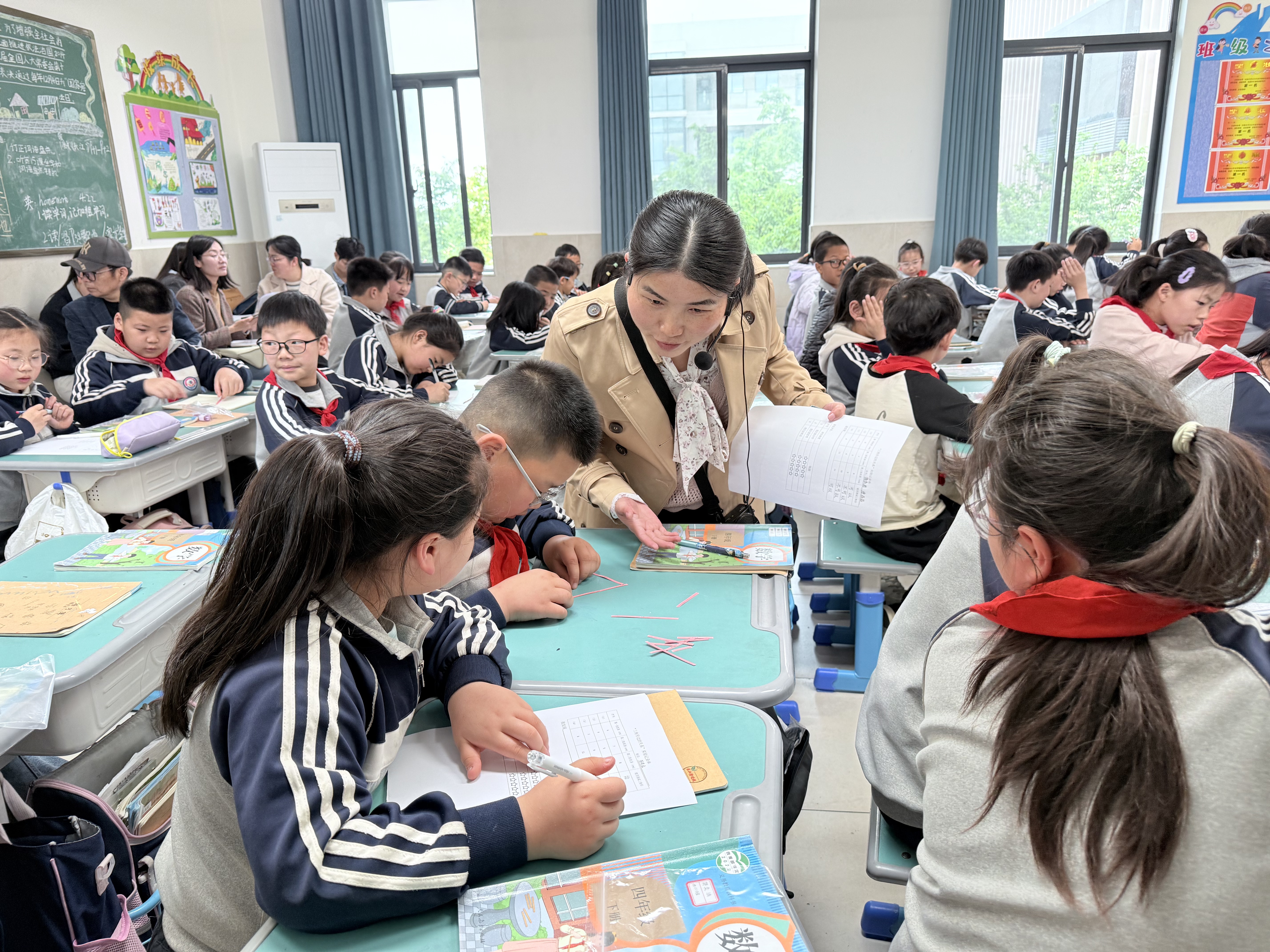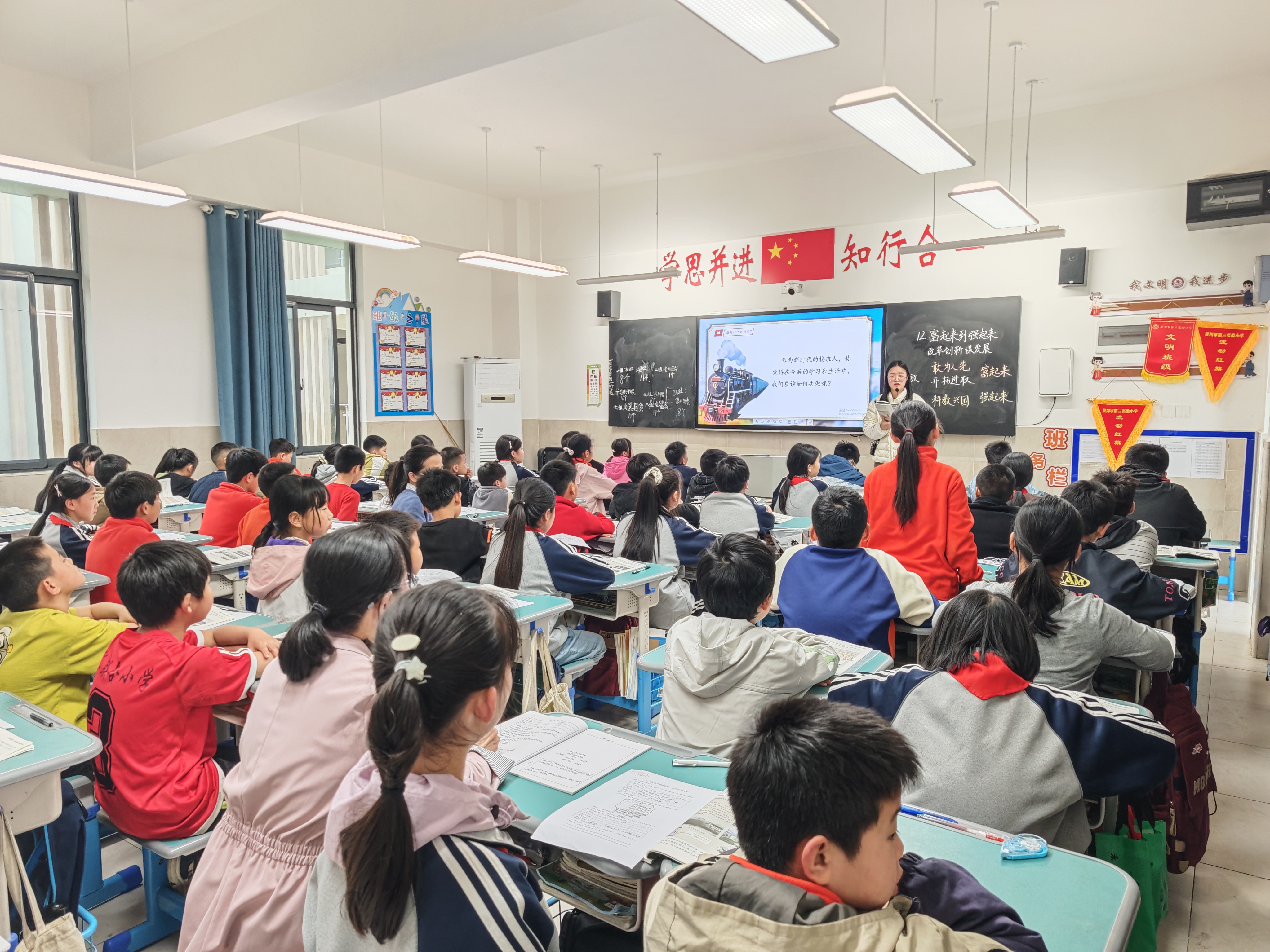 实践课环节,语文、数学、英语、道德与法治四门学科分别在万福校区进行课堂展示,检验集备成果转化实效。