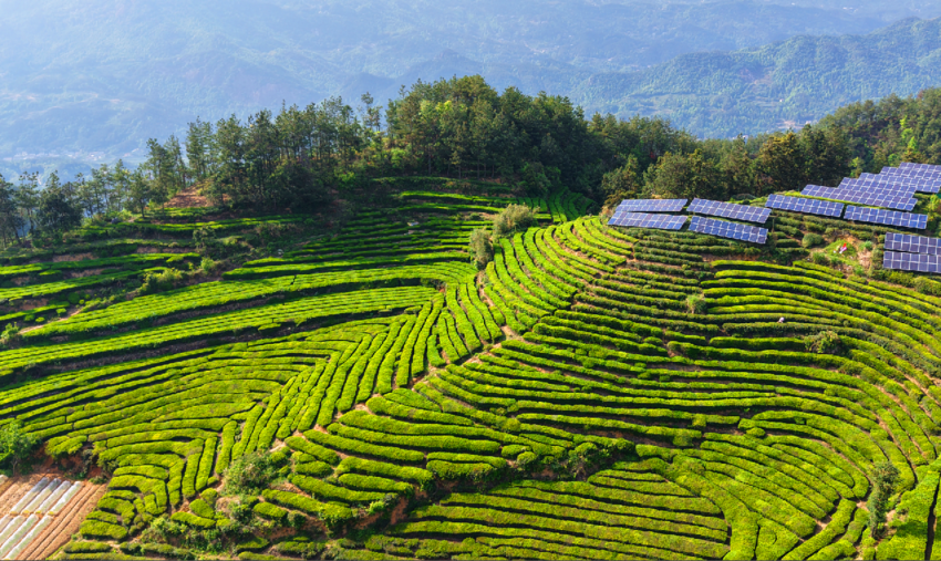 公路两侧,成片的茶园层层叠叠、绿意盎然,清风拂过,茶香四溢。游客们漫步茶园,体验采茶乐趣,近距离享受田园慢生活。