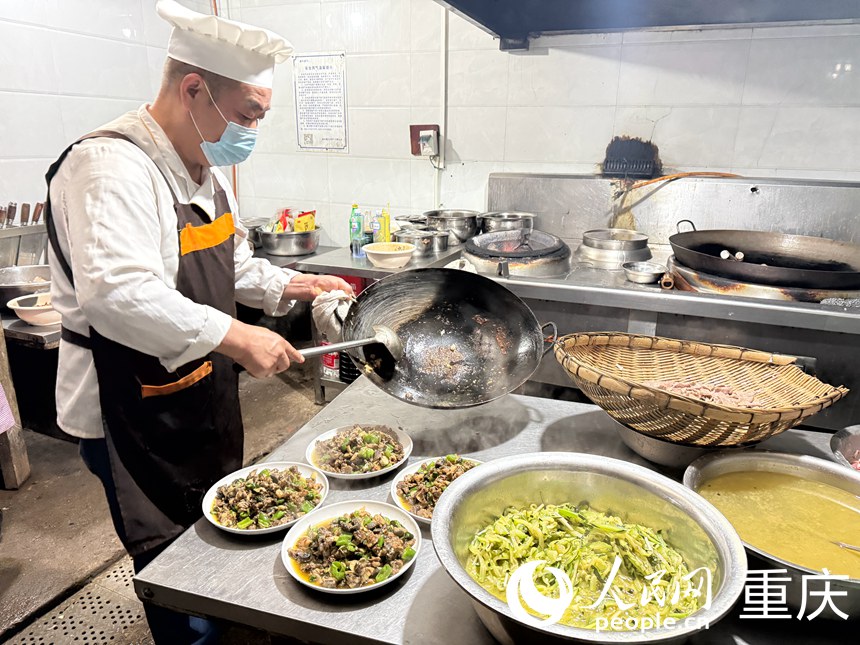 大桥饭店主厨正在为老人们准备菜品。人民网记者 胡虹摄